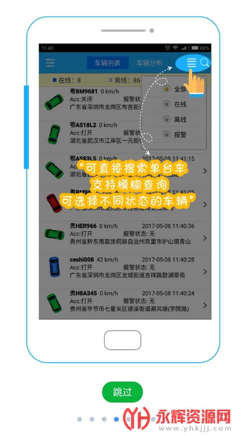 慧视通手机查车app安卓版是一款方便实用的移动端手机查车软件。这款软件可以帮助用户定位自己的位置、查看车辆的实时位置和历史轨迹回放等功能。用户还可以自定义设置车辆,并接收相关信息进行统计,以及给反馈信息等。该软件使用简单方便,可以更加高效地寻找到轨迹和统计。如果您您对这款软件有使用需求的话,那么不妨来永辉资源网下载体验一番吧!
