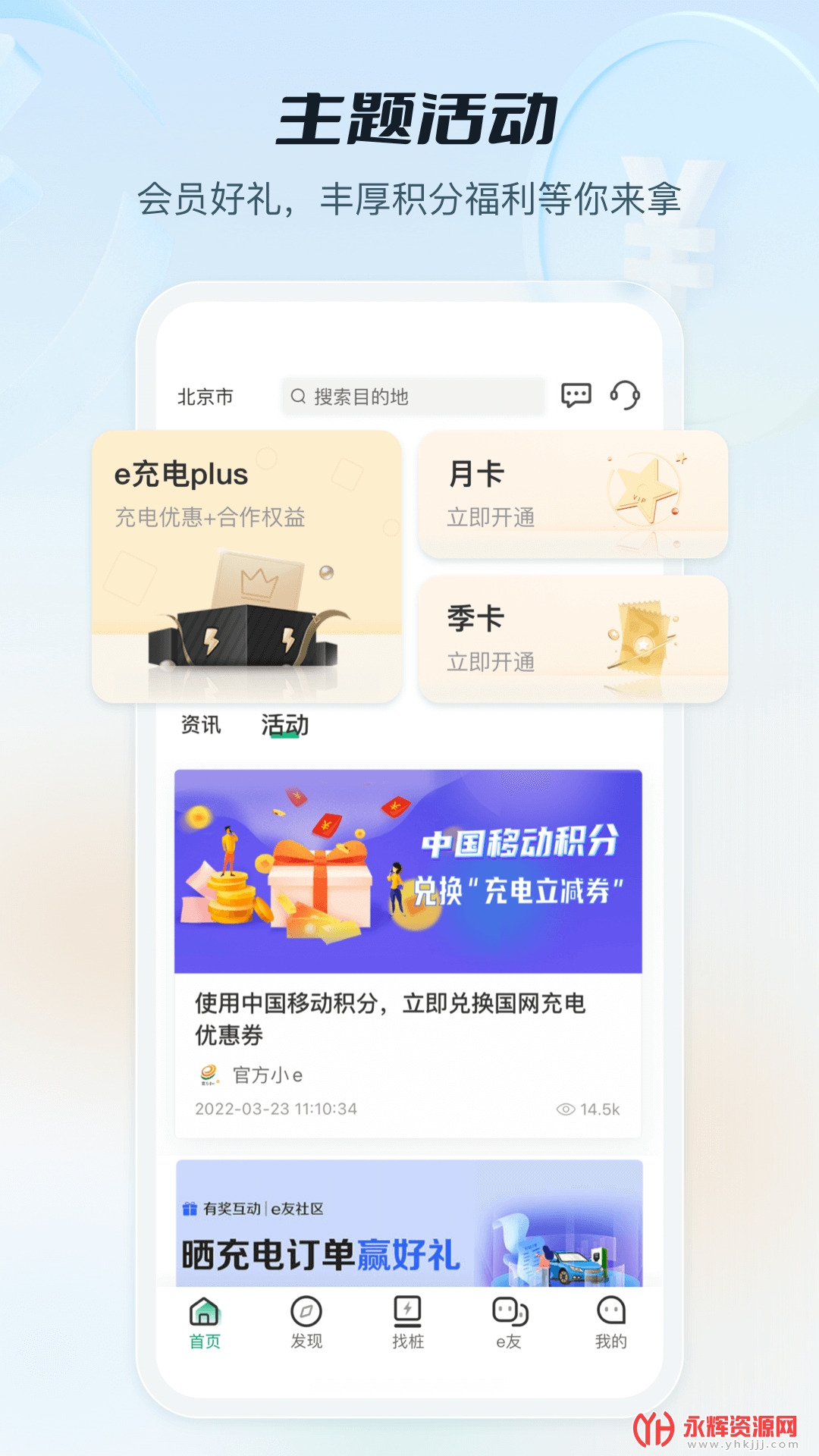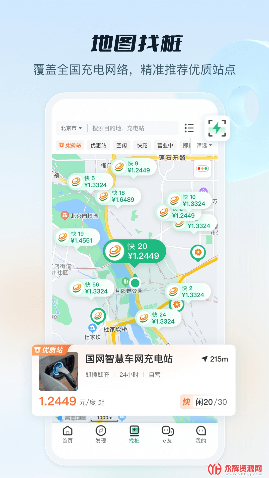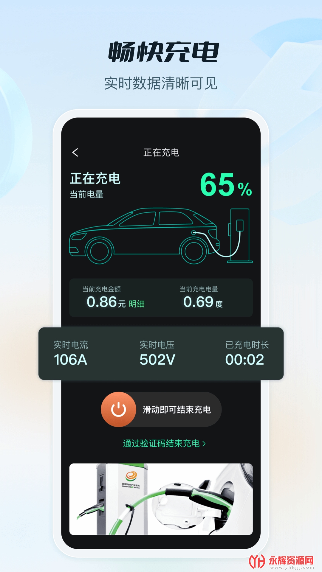 国网e充电是一款为电动汽车充电服务打造的移动端充电软件,能够实时显示附近所有的充电桩,提供即时的规划自己的路线,舒适的界面操作体验,方便的功能服务等。这是国家电网为广大新能源车主打造的车生活生态服务智能平台,集合了覆盖全国的充电网络,提供智能找桩、扫码充电、行程规划、评论互动等服务,并且还有即插即充、车电服务包等多种服务选择。通过使用这款软件,用户可以享受优质用车服务,分享低碳生活。如果您喜欢这款软件的话,欢迎来永辉资源网下载体验!