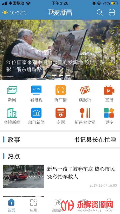 我爱新昌app安卓版是一款非常好用的移动端新闻资讯平台软件。这款软件包含新闻资讯、直播广播、生活服务等功能。用户可以通过该应用获取最新的本地资讯和精彩生活。该应用综合了文字、图片、视频等媒体手段,并设置了实时直播和重要栏目回看功能,方便用户随时获取信息。界面设计亲和,调阅方便,是最快捷、最便利、也是最时尚的方式获取本地资讯。如果您对这款软件感兴趣的话,欢迎来永辉资源网下载体验吧!