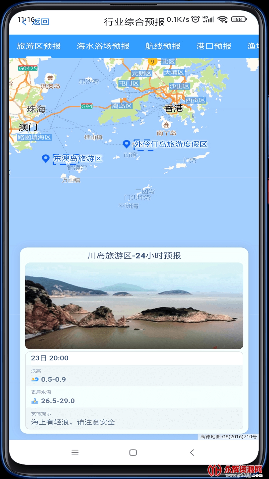 南海海洋预报中心app官方版是一款帮助用户提高天气预报效果的应用软件,可以查看南海海洋上空天气、掌握整个海洋的大小预计水位速度等信息、查看沿海海边的潮汐过程和时间,了解海面具体情况并随时查看潮汐数据。如果您对这款软件感兴趣的话,不妨来永辉资源网下载体验一番吧!