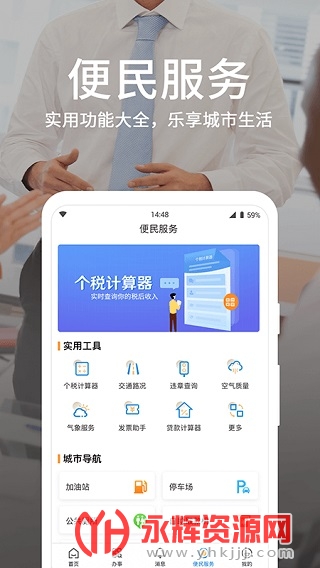 环保交通:提供环保投诉、垃圾分类指南、交通违法查询等服务,方便公众进行环保交通相关业务处理。