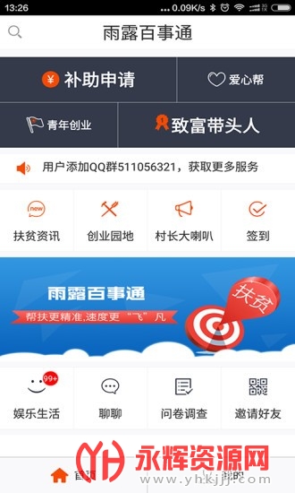 驻村干部帮扶:雨露百事通还提供驻村干部帮扶、社会帮扶、电商扶贫、致富带头人等服务,帮助用户更好地融入社会、增加收入来源。