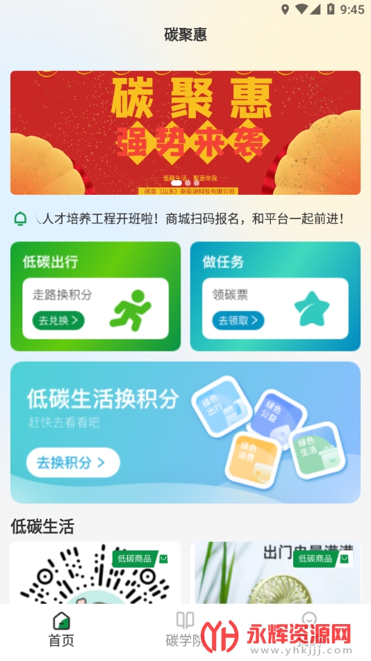 商学院教育培训:碳聚惠的商学院板块提供了相关的环保知识和教育培训,帮助用户深入了解环保理念和行动,提高对环保事业的认知和意识。