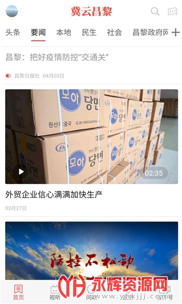本地化资讯报道:冀云昌黎专注于昌黎地区的新闻报道,提供权威、准确、及时的本地资讯。用户可以通过该应用获取昌黎地区特定的新闻动态、社会热点和政务信息。