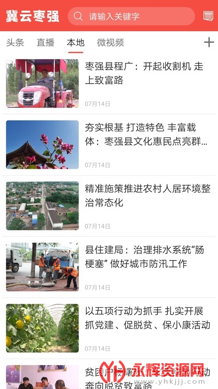 - 头条新闻阅读:冀云枣强App提供了各类热门头条新闻内容,让用户随时了解社会、娱乐、体育等各个领域的最新资讯。