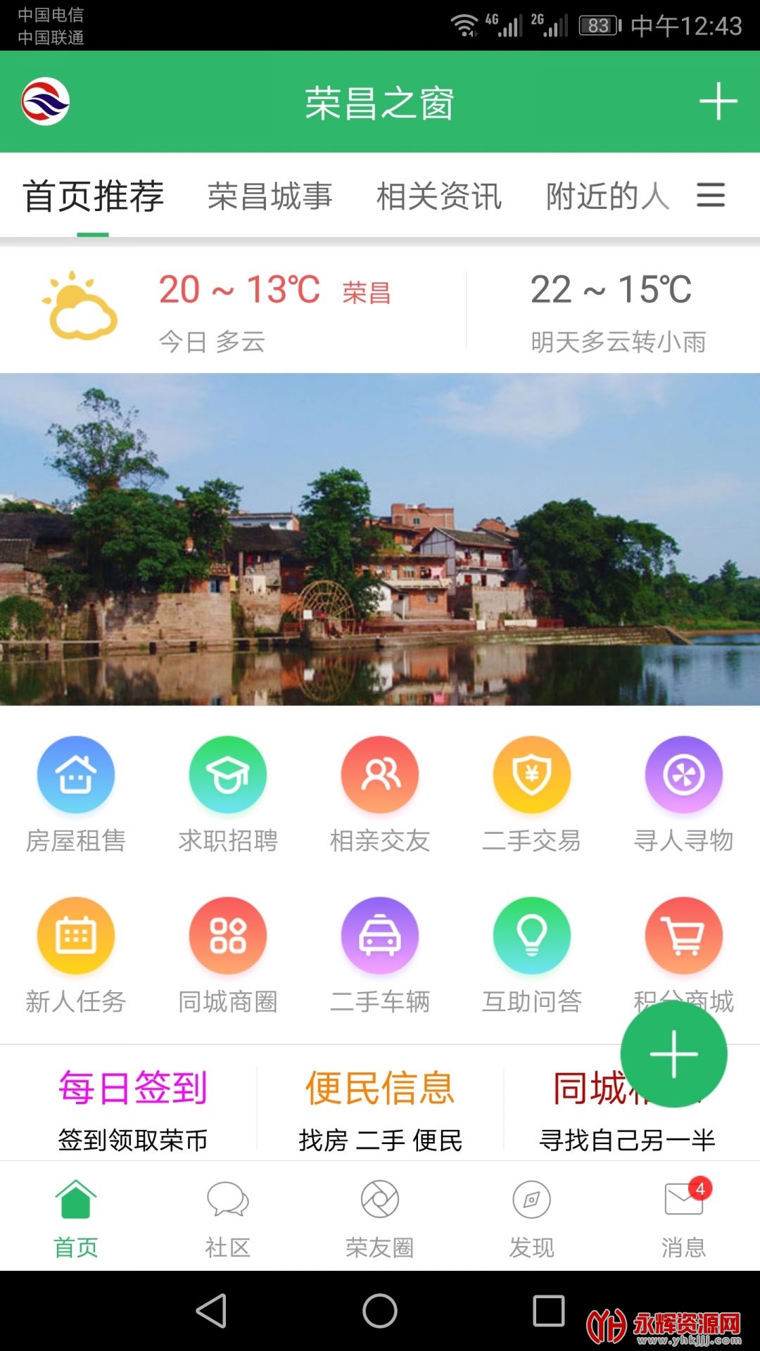 荣昌之窗手机版app是一款专为重庆荣昌地区人民打造的移动端生活服务类软件。该应用提供吃喝玩乐、生活资讯等各种服务,满足用户的需求。它具有强大的功能,可以帮助用户解决各种生活问题。作为荣昌本地生活门户平台,荣昌之窗为本地人分享本地新鲜事,提供招聘求职、买房卖房、征婚交友、吃喝玩乐等生活服务。无论你需要什么,在这里都能快速解决烦恼,并且提供便捷的在线帮助。如果您喜欢这款软件的话,欢迎来永辉资源网下载体验!