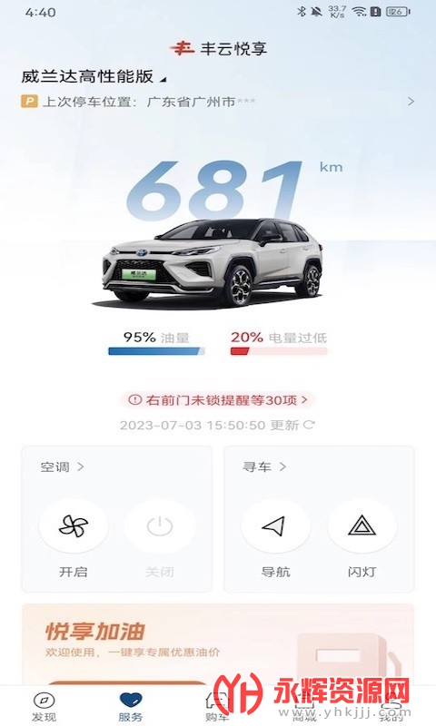 安全与保障服务:丰云行提供车辆安全相关的服务,如云车钥匙、车辆定位、远程故障诊断等,保障用户的行车安全和用车便利。