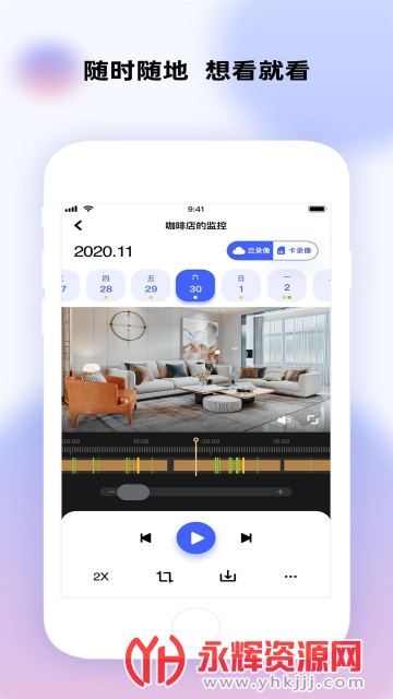 1、实时预览和回放:通过连接摄像头设备,用户可以在手机上进行实时监控预览和录像回放。