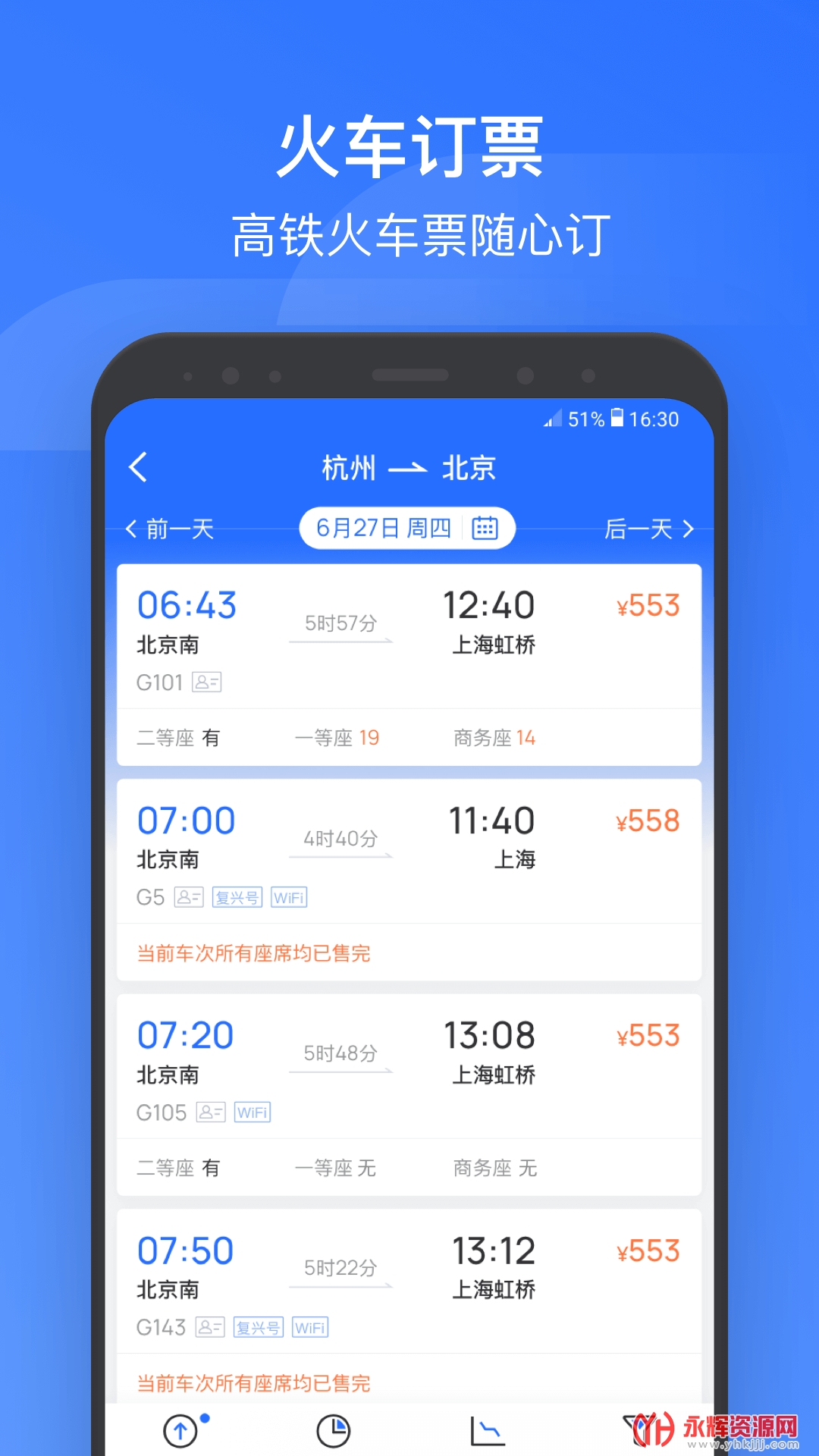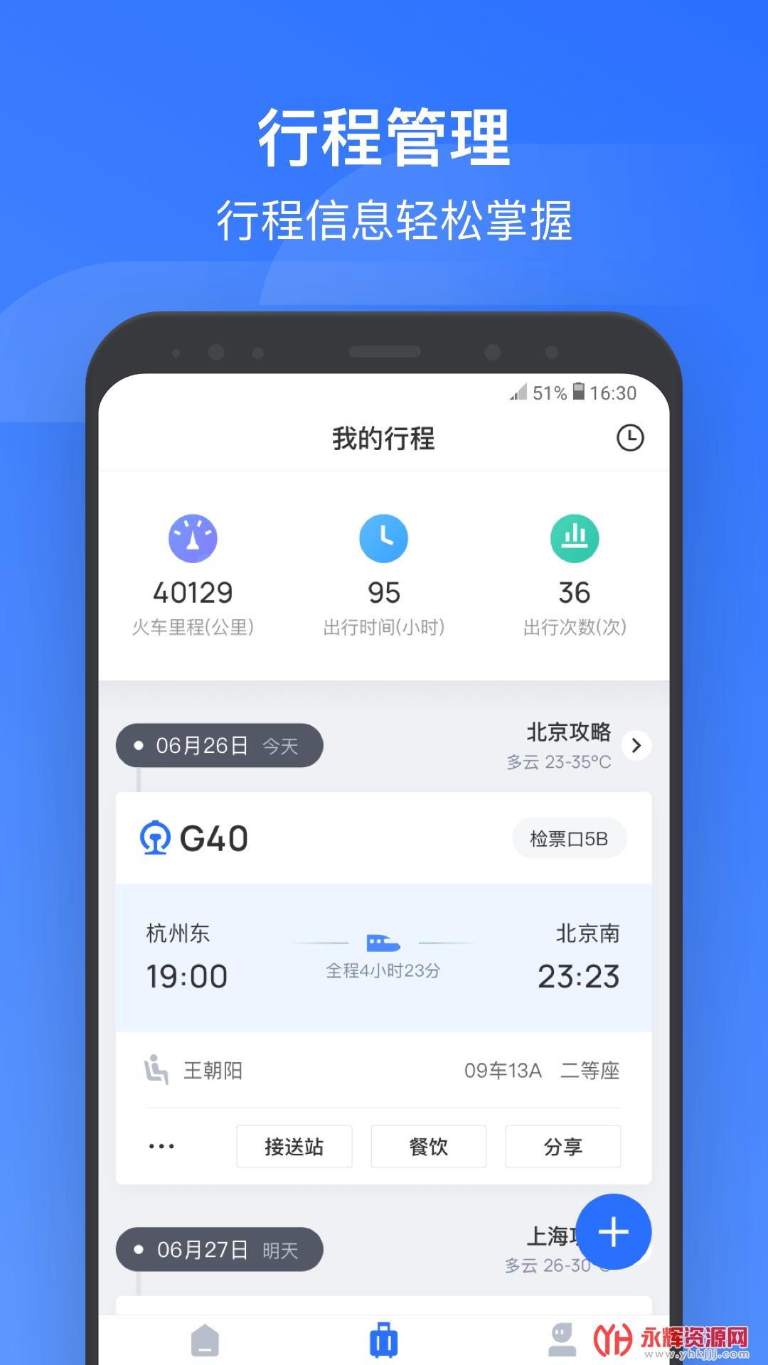 掌上高铁还具备完善的行程管理功能,可自动同步12306账号行程,随时查看列车信息,告别赶车误点的烦恼。