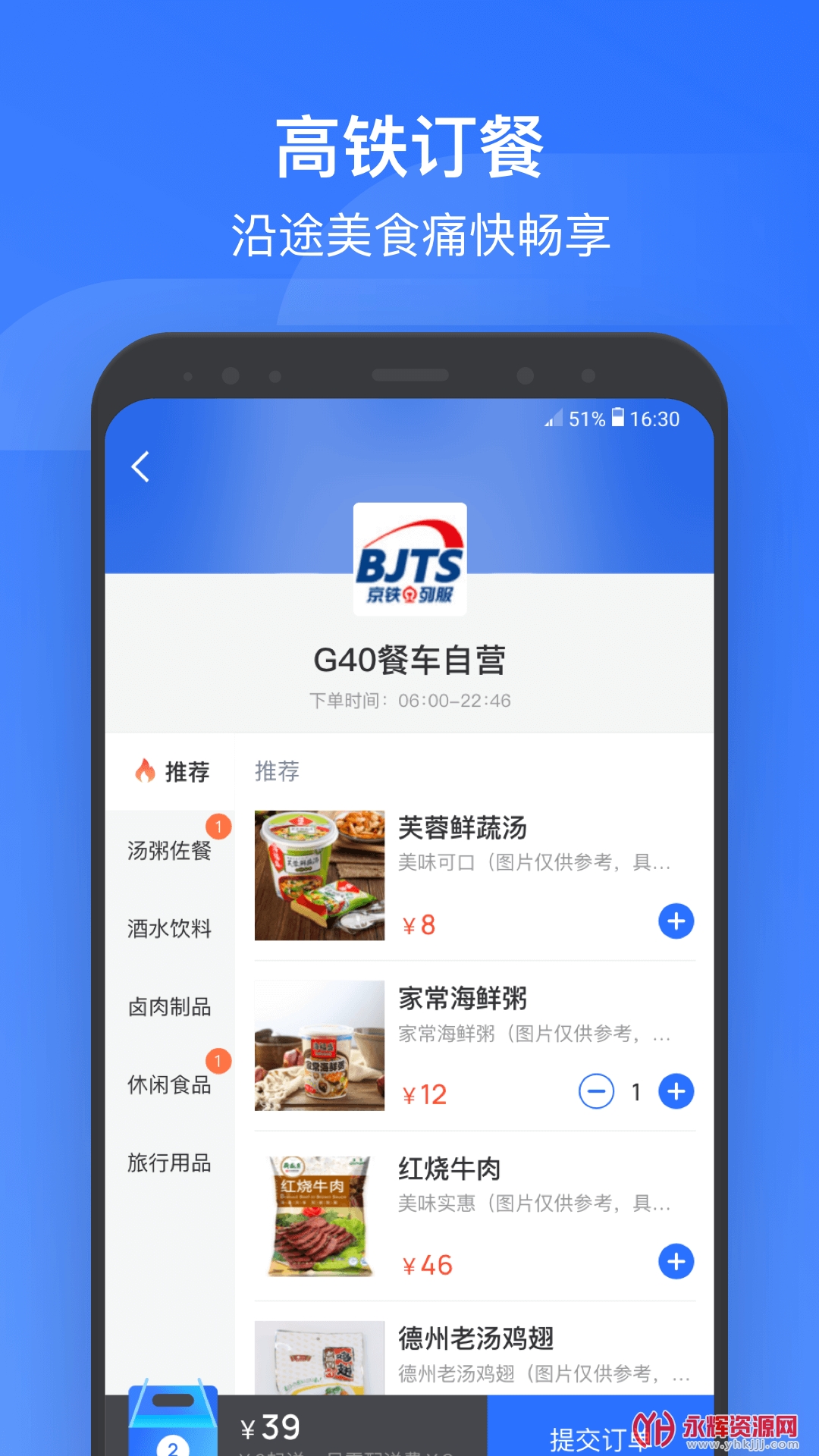 方便订餐服务:用户可以在应用中预订高铁车厢内的美食,提前选购并避免排队等待,节省时间。
