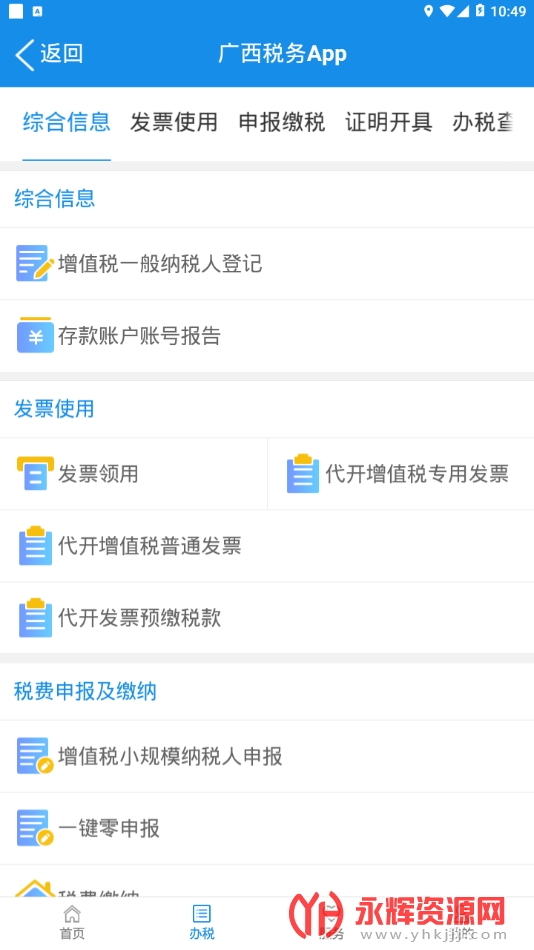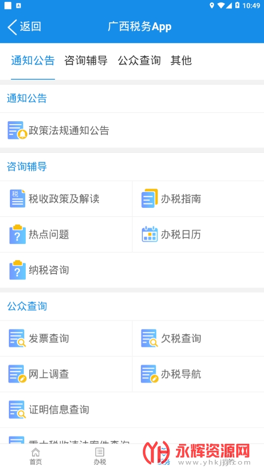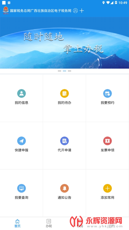 广西税务是一款由国家税务总局广西壮族自治区税务局委托开发的移动办税应用软件。广西税务的主要功能涵盖纳税申报、税款查询、税收政策查询、电子缴费、个人税务信息管理、税务咨询和办事指南以及电子发票管理等,旨在为纳税人提供方便、快捷的办税服务,普及税收知识和宣传税法。通过推广电子税务局的使用,广西税务将办税过程简化,提升用户体验,帮助纳税人更好地掌握办税渠道和方式。如果您对这款软件感兴趣的话就来永辉资源网下载体验一番吧!