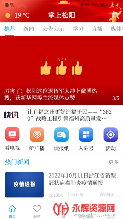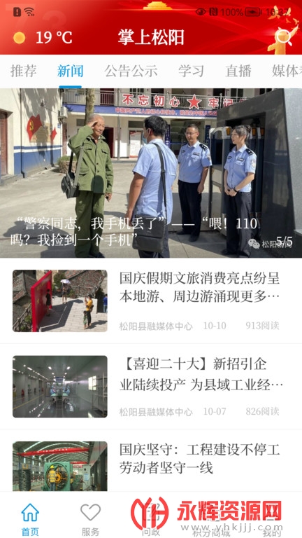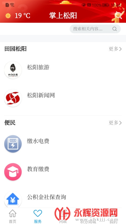 媒体聚合:掌上松阳将本地的各类媒体关于时政、生活、服务和旅游等信息聚合在一起,让用户可以方便地获取全面的本地资讯。