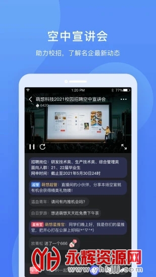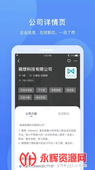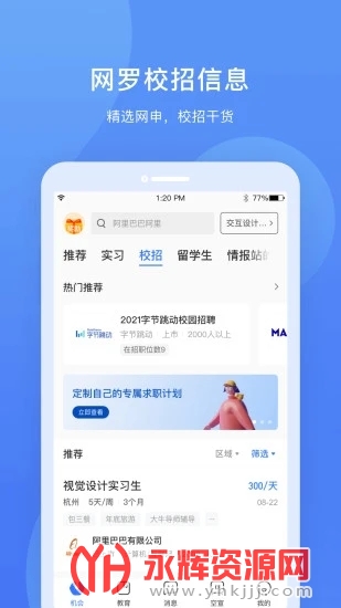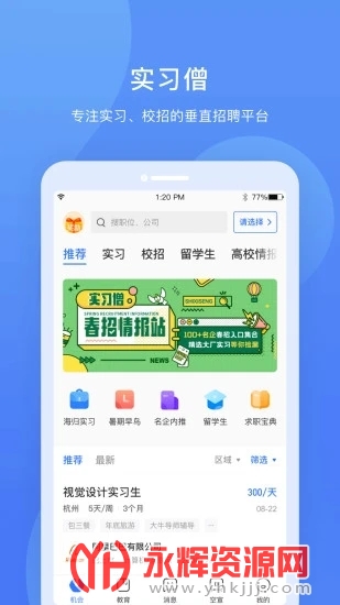 实习僧是一款专为大学生群体设计的安全可靠的手机求职就业平台。针对大学生经验少、求职技能弱、定位不明确等特点,实习僧提供了一系列特色功能,包括匹配度分析、个性简历系统、求职反馈系统和职业路径推荐。如果您对这款软件感兴趣的话,不妨来永辉资源网下载体验一番吧!