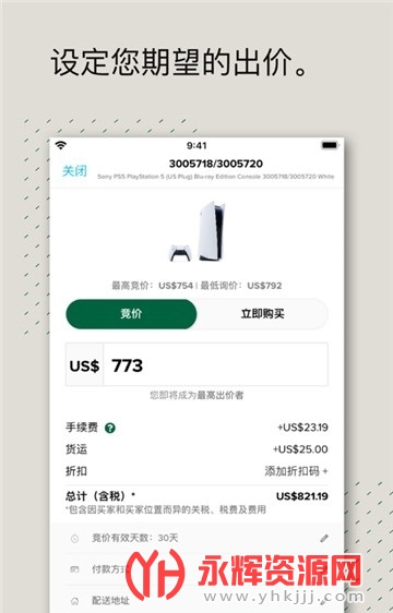 6、如果选择立即购买,您需要输入付款信息完成订单支付。如果选择竞拍,您需要设定出价并等待竞标结束。