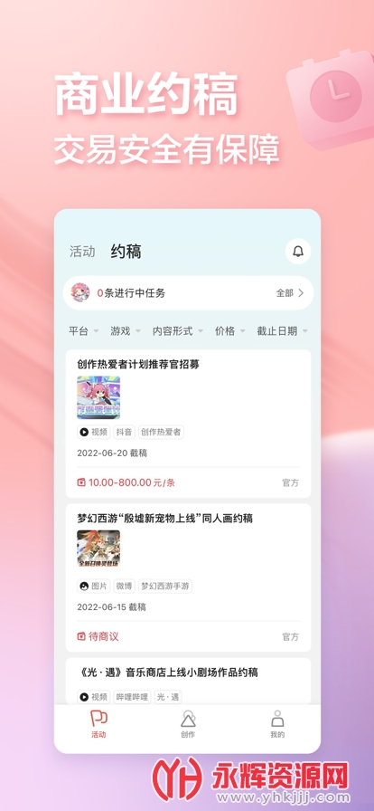 商业约稿保障:平台提供商业约稿的安全保障,确保创作者的权益得到保护。