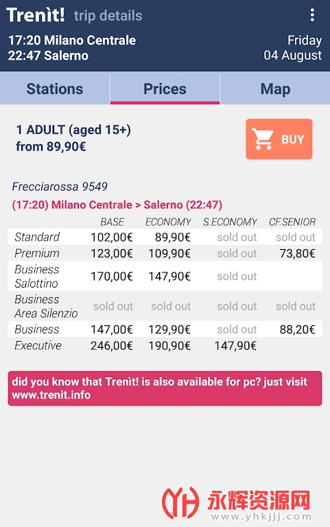 - 票价查询:用户可以通过 Trenìt! 查看不同列车的票价信息,帮助用户进行预算和选择合适的乘车方案。