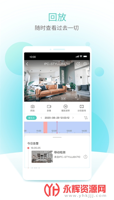录像回放:保存所有录像,支持切片回放和调节播放速率,满足用户多样化观看需求。