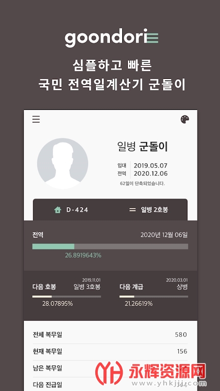 Goondori是一款由Holy Kiwi研发制作的移动端追星查询应用工具社区软件。这款软件的主要功能是查询明星偶像服兵役和退伍的时间,帮助粉丝们更准确地了解自己喜欢的明星的近况。用户可以自行调整开始日期,并实时查看偶像的服役时间,确保追星计划更加有条不紊。如果您对这款软件感兴趣的话,不妨来永辉资源网下载体验一番吧!