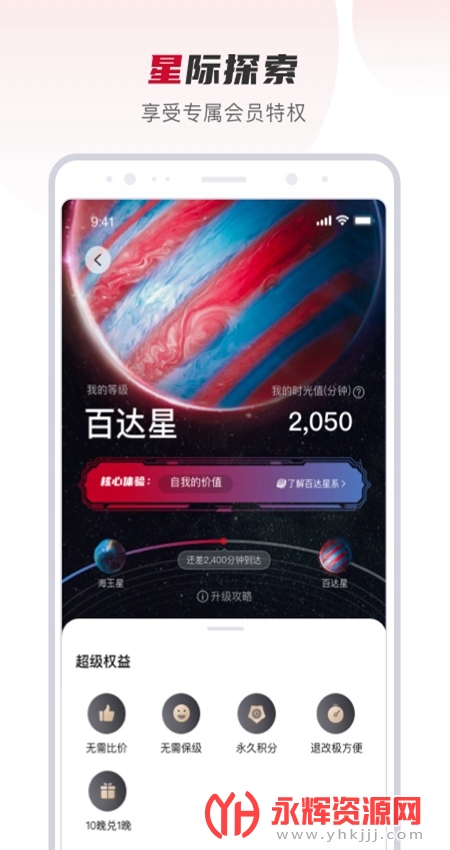 创新的会员体系:百达星系以时间作为货币,在虚拟的星际世界中,用户以“星际漫步者”的身份,从地球出发,探索更远的星球,享受不同的权益和福利。