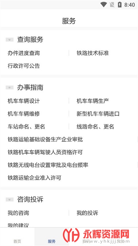 4、铁路事项查询:用户可以通过该应用查询多项铁路事项,例如铁路机车驾驶员资格许可、铁路运输企业许可等。这使得用户能够方便地获取相关信息和办理相关事务。