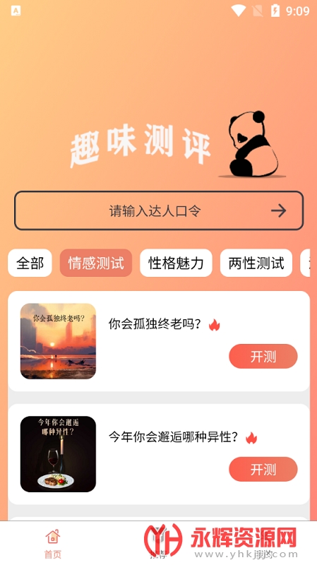 1、多种测试项目:奇缘趣玩App提供了心理测试、情感测试、家庭婚姻测试和个性测试等多种测试项目,用户可以通过这些测试来了解自己在不同领域的表现和特点。