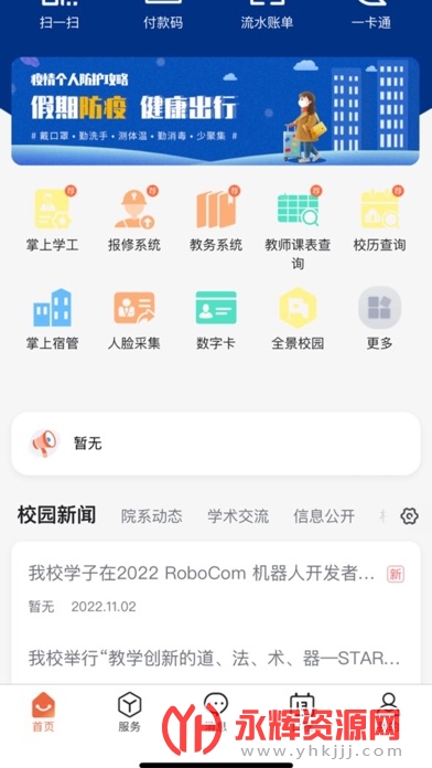 校园动态与公告:用户可以通过软件及时获取到学院最新发布的校园动态和公告信息,包括学术讲座、文化活动、招聘信息等,确保用户不会错过任何重要信息。
