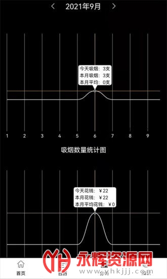 1、抽烟记录:用户可以在软件中记录下每次抽烟的时间、地点以及消耗的金钱。