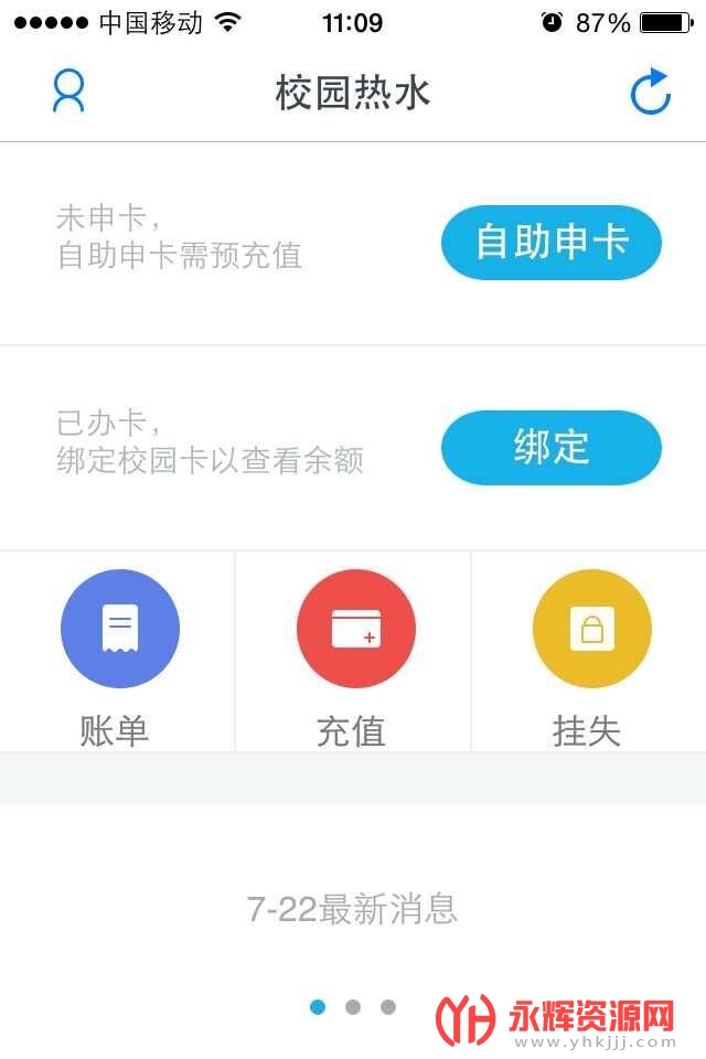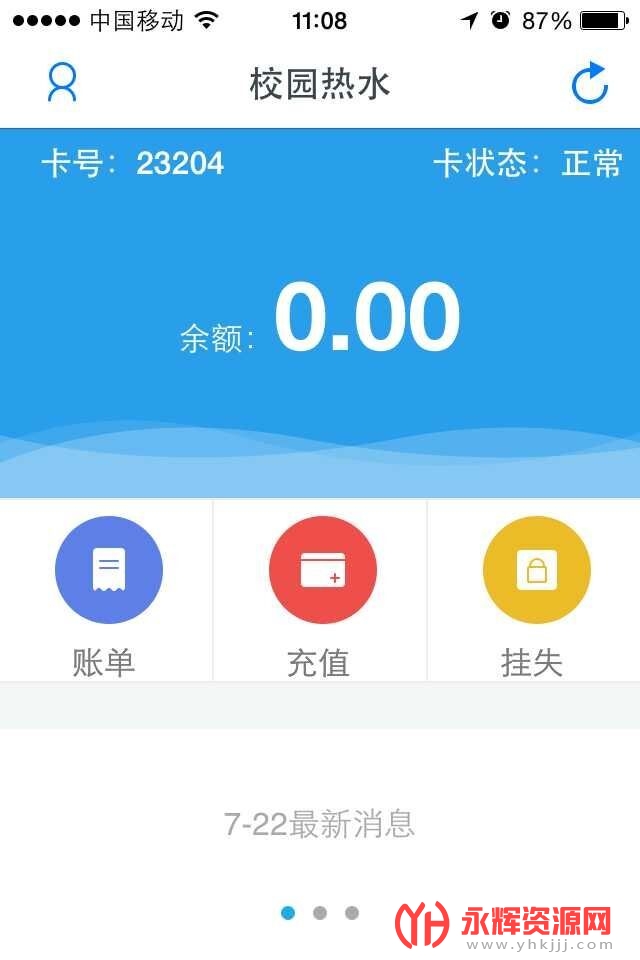 校园热水是一款专为在校学生设计的手机应用软件,通过绑定学校办的热水卡,为学生提供便捷的校园热水服务。不仅可以在线充值、查看充值记录,还具备卡挂失、补卡、故障保修和意见反馈等功能,方便学生进行操作,极大地简化了校园热水管理流程。该软件无需排队,利用软件即可完成充值、挂失、补卡等操作,节省时间和精力,还有在线充值和充值记录功能,帮助学生实时掌握消费情况,合理规划开支。如果您对这款软件感兴趣的话,不妨来永辉资源网下载体验一番吧!