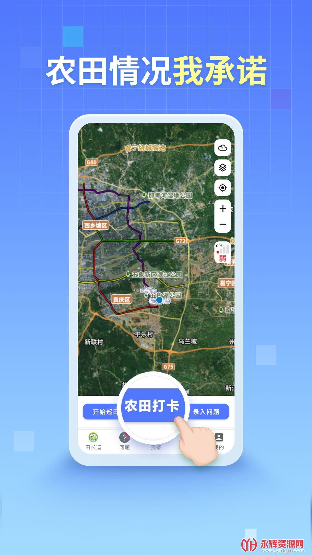 软件的特色之一是其能够记录巡田的路线,为田长们提供便利。此外,软件还提供了巡田打卡功能,方便田长们快速记录巡查的过程和结果。