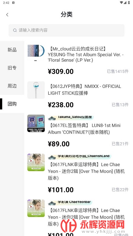 1、商品浏览与选购:用户可以通过YETIMALL浏览和选购各类偶像相关商品,如最新专辑、周边产品、杂志、写真、签售会等。