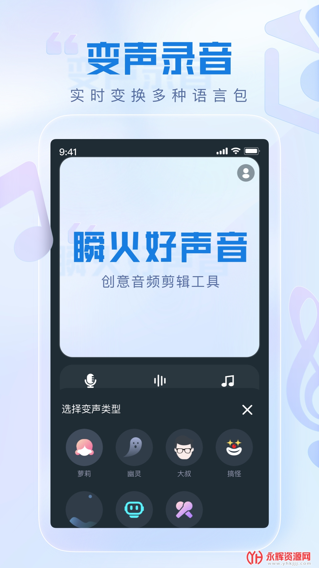 瞬火好声音是一款非常实用的移动端音乐变声处理应用软件,提供多种音效模式让用户随心切换,同时支持一键生成专属歌声。该软件还支持导入视频和链接中的音频文件,并可在线录制音频,提供多种编辑功能,让用户轻松制作自己的音乐视频。用户可以根据自己的需求,自由调整音频参数,享受高品质的音乐体验。瞬火好声音支持社交媒体分享,让用户可与家人和朋友分享音乐或录音。如果您对这款软件感兴趣的话,不妨来永辉资源网下载体验一番吧!