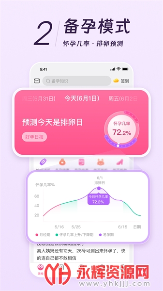 备孕助手:通过简单记录大姨妈日期,自动推算最佳备孕时机,提供备孕指导和建议。