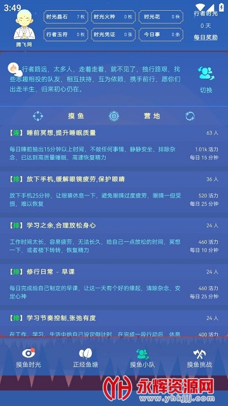 行者时光app旨在提供用户一个既能够放松身心摸鱼的空间,又能够有效规划日常任务的工具。通过该应用程序,用户可以享受休闲娱乐的同时,提醒自己按时完成重要任务。
