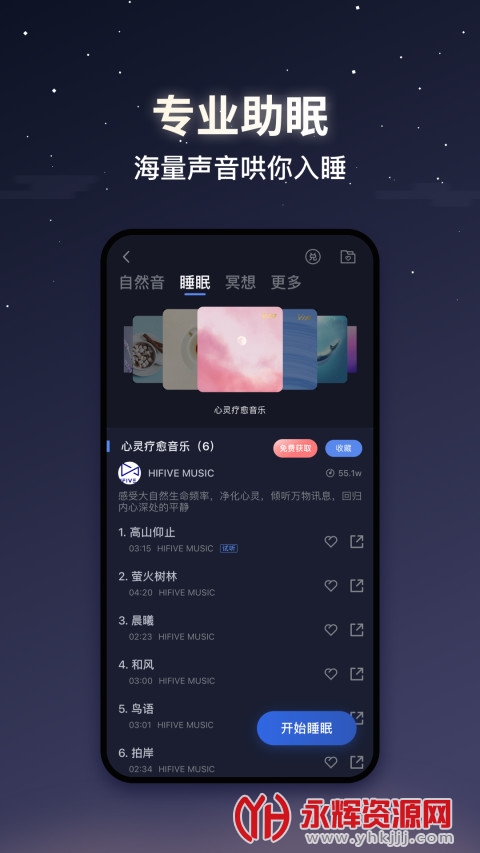 原创助眠音乐:与顶尖音乐家和睡眠科学家合作创作,经过大量实验验证的原创音乐,提供有效的助眠效果。