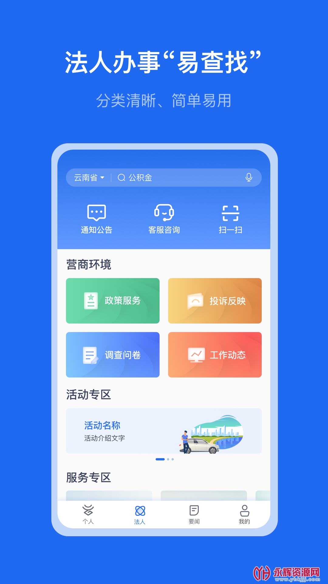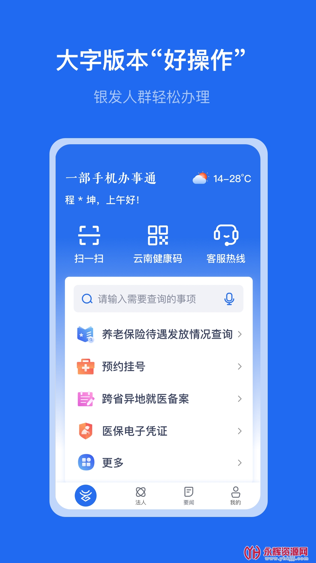 云南政务服务是云南省委、省政府深化“放管服”改革与建设银行合作开发的一款移动端政务办理服务平台应用软件。这款软件旨在为企业和群众提供便捷的政务服务。用户可一站式办理云南全省范围内公安、人社、医保、税务等40个部门的多项业务,覆盖生活各个领域涵盖公安、人社、医保、税务等40个部门的多项业务,方便用户一站式办理各类事务。如果您对这款软件感兴趣的话,不妨来永辉资源网下载体验一番吧!