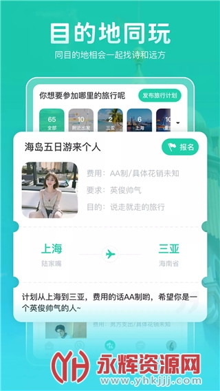 5、结伴出游:用户可以在尤玩旅行app中找到志同道合的旅伴,共同组织行程,提高旅行的安全性和乐趣。