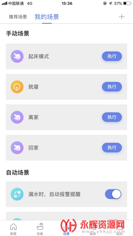 2、智能场景:支持智能场景自动执行,用户可以根据需求设定不同的场景,如起床模式、离家模式、睡眠模式等,实现智能化生活体验。