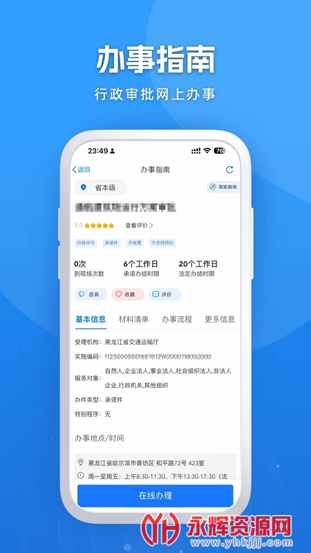 - 轻松查看办事进度,增加办事的可控性。