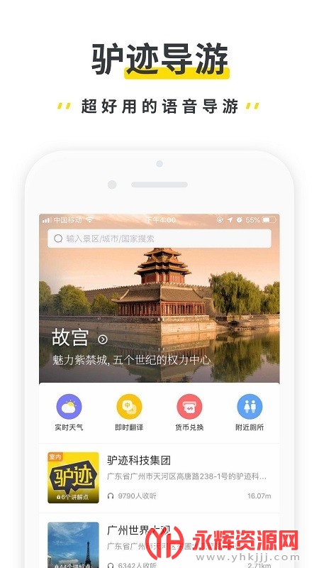 驴迹导游是一款功能齐全且非常好用的移动端掌上智能导游平台手机应用软件,由广州骇特商务咨询有限公司开发打造。作为一款手绘地图APP手机导游软件,它旨在为景区游客提供自助导游服务,满足旅行中的各种需求。驴迹导游集智能景区导游、旅游社交和旅游指南等功能于一体,为用户带来全新的游玩体验,深入了解景点文化。如果您对这款软件感兴趣的话,不妨来永辉资源网下载体验一番吧!