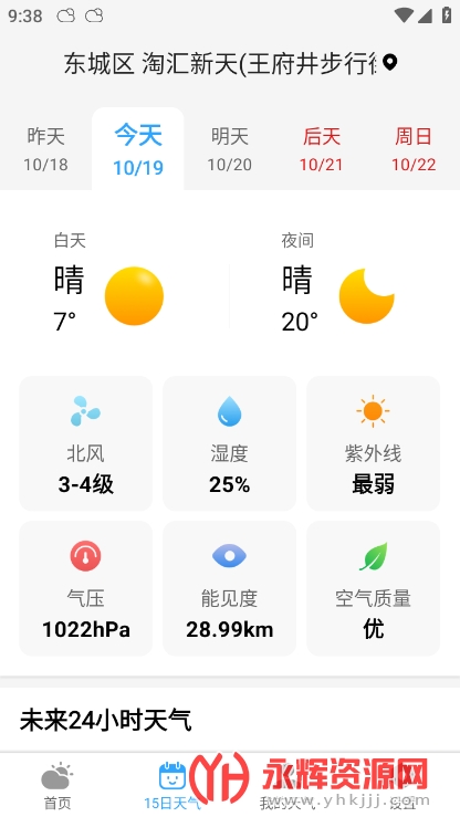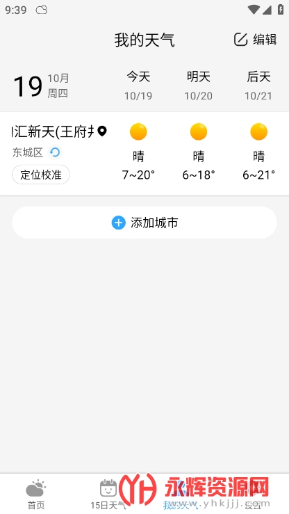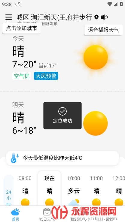 地理位置定位,提供附近地区的天气预报。