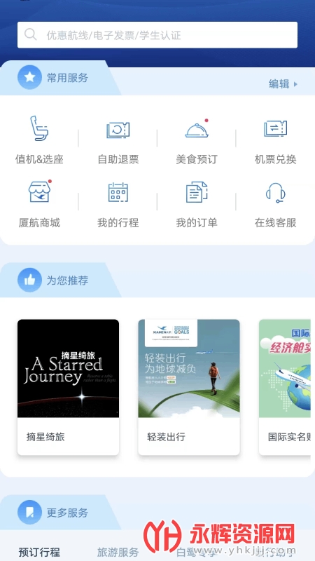 厦门航空是一款非常好用且功能齐全的移动端掌上手机航空旅行平台应用软件,由厦门航空公司为客户打造推出。这款应用软件界面简约、体积轻巧、运行快速、操作安全简单。用户通过免费下载并注册登录该应用,即可成为厦门航空白鹭会员,享受会员相关权益。如果您对这款软件感兴趣的话,不妨来永辉资源网下载体验一番吧!