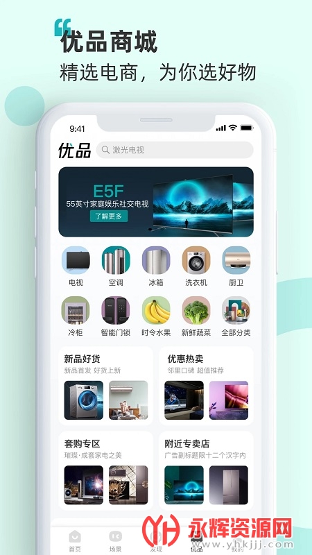 3、优品商城:应用程序拥有优品商城,提供海信智能家居产品以及其他相关产品的购买服务。