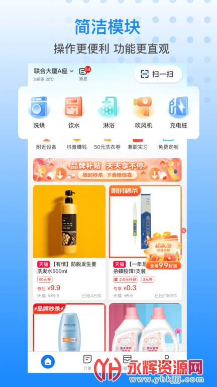设备预约:用户可以使用软件预约周边设备,如洗衣机、饮水机、淋浴器等,不用出门也能轻松满足生活所需。