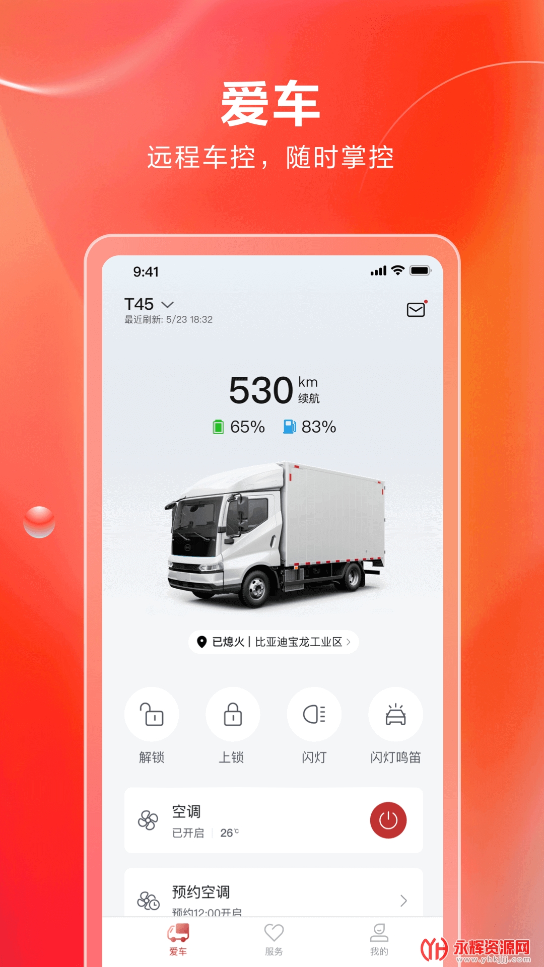 比亚迪卡车软件是一款非常智能且简单易用的移动端掌上在线智能用车及智慧出行平台应用软件,专门为比亚迪用户打造开发。通过这款应用软件,用户可以享受到远程控制、寻桩救援等一系列服务,为用户带来更加智能、便捷的用车体验!如果您对这款软件感兴趣的话,不妨来永辉资源网下载体验一番吧!
