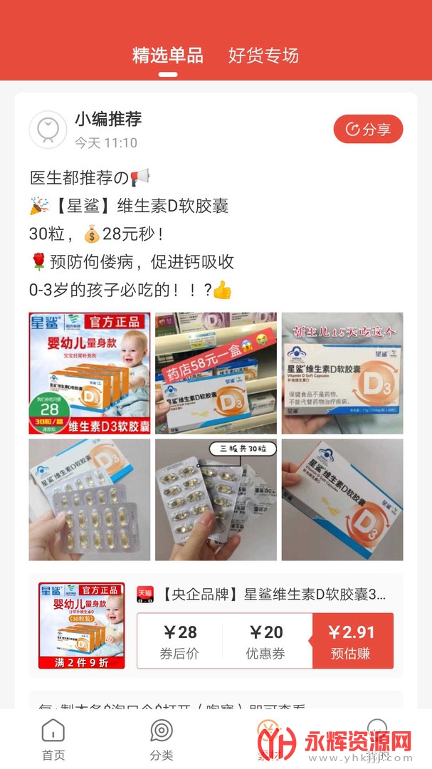 凡猫购拥有各大品类的优质商品,并且所有的商品分类明确,用户可以轻松找到所需商品。同时,软件每日将提供各类商家的优惠券,用户可以直接领取并在购物时抵现金。若用户分享购物链接给好友,好友通过链接购物后,用户则可获取返利。
