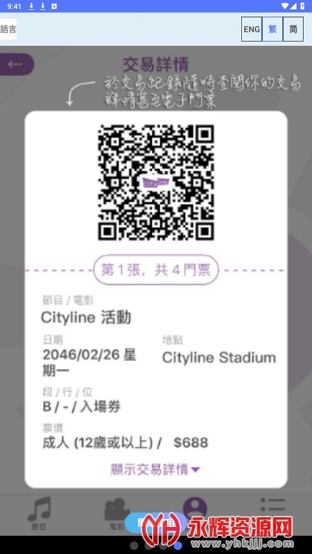 4、订单管理:用户可以在Cityline软件中查看和管理已购买的门票订单。这包括订单确认、取票方式、退换票政策等相关信息,使用户能够轻松掌握自己的购票情况。
