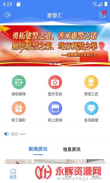 1、新闻资讯:惠警汇APP会实时发布天津滨海工会的相关新闻、政策以及最新动态,方便会员及时了解工会工作。