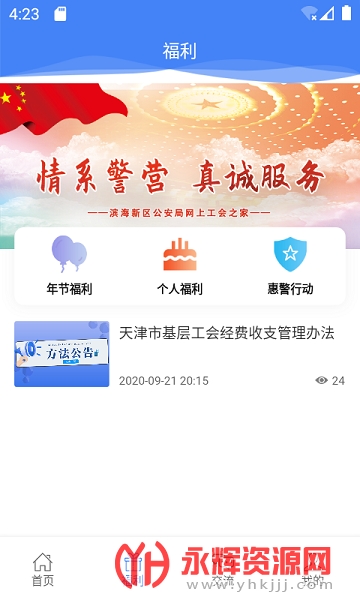 4、活动资讯:惠警汇APP会发布天津滨海工会组织的各类活动信息,包括文艺表演、体育比赛、技能培训等,方便会员报名参与。