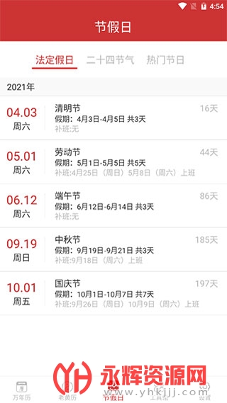 法定节假日显示:清晰显示各项法定节假日的日期,方便用户参考和规划。
