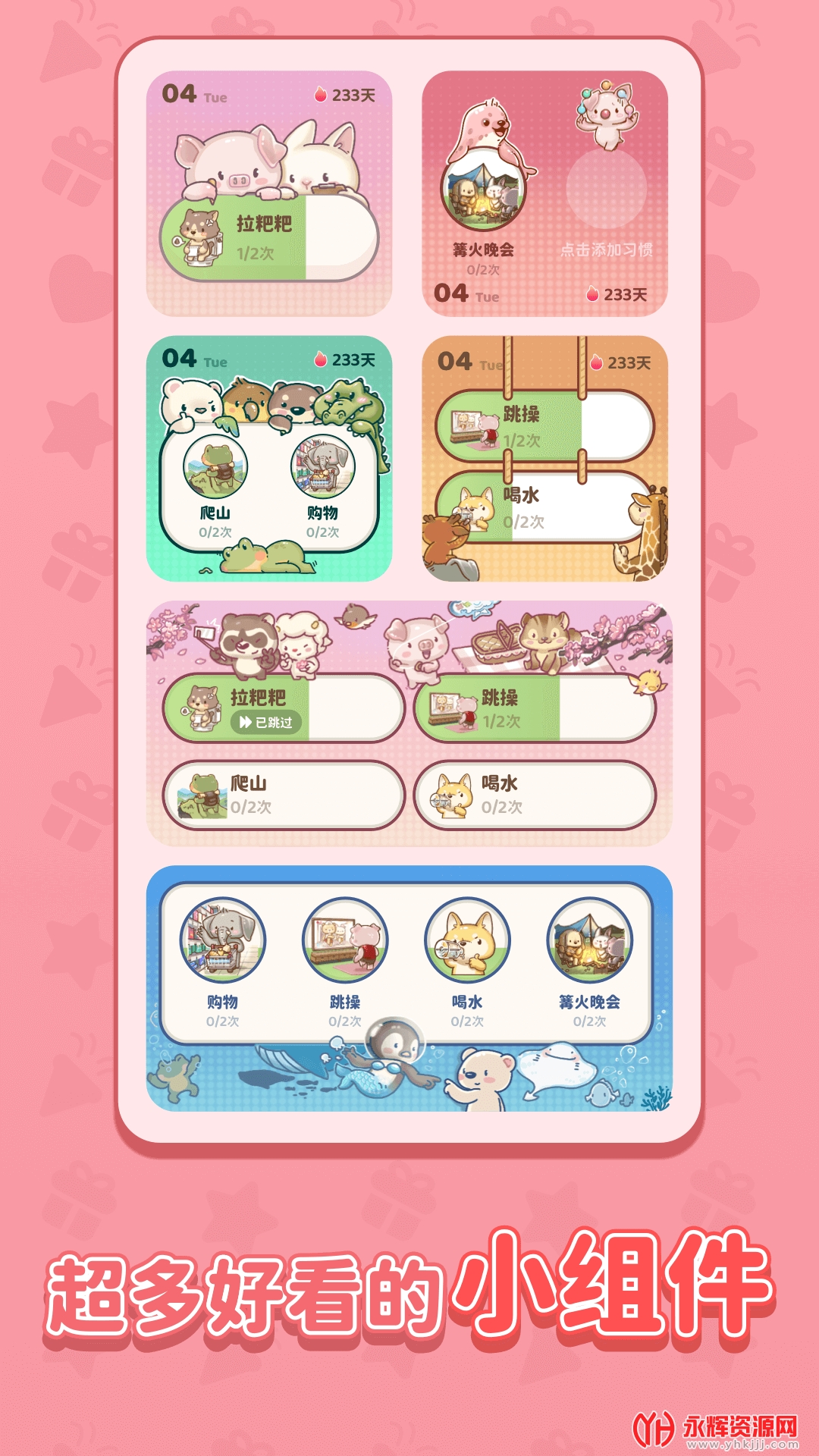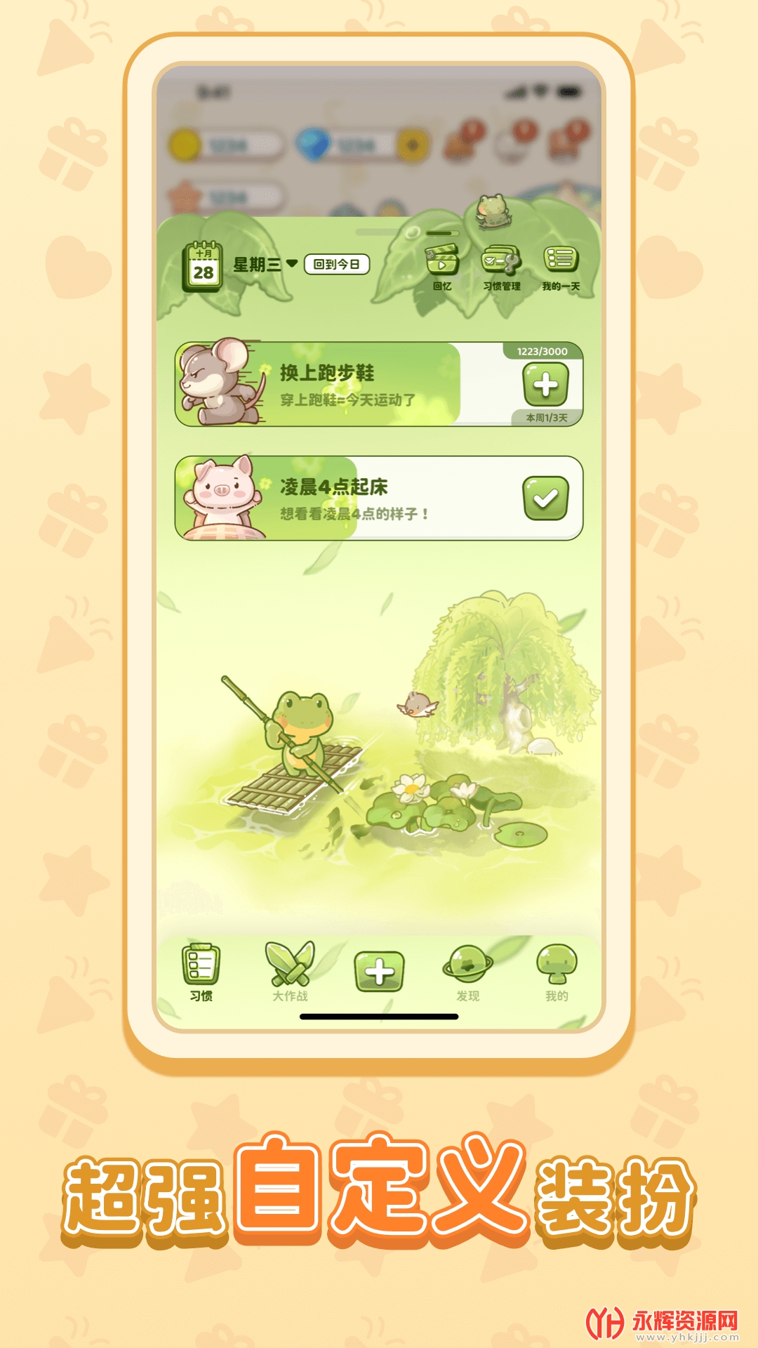 习惯大作战是一款非常独特且非常好玩的移动端掌上习惯养成平台应用软件。这款软件专注于帮助用户建立和坚持良好生活习惯,其通过卡通可爱的界面和互动元素,将习惯养成融合到游戏化的体验中,让用户在轻松愉快的氛围下自我提升。如果您对这款软件感兴趣的话,不妨来永辉资源网下载体验一番吧!